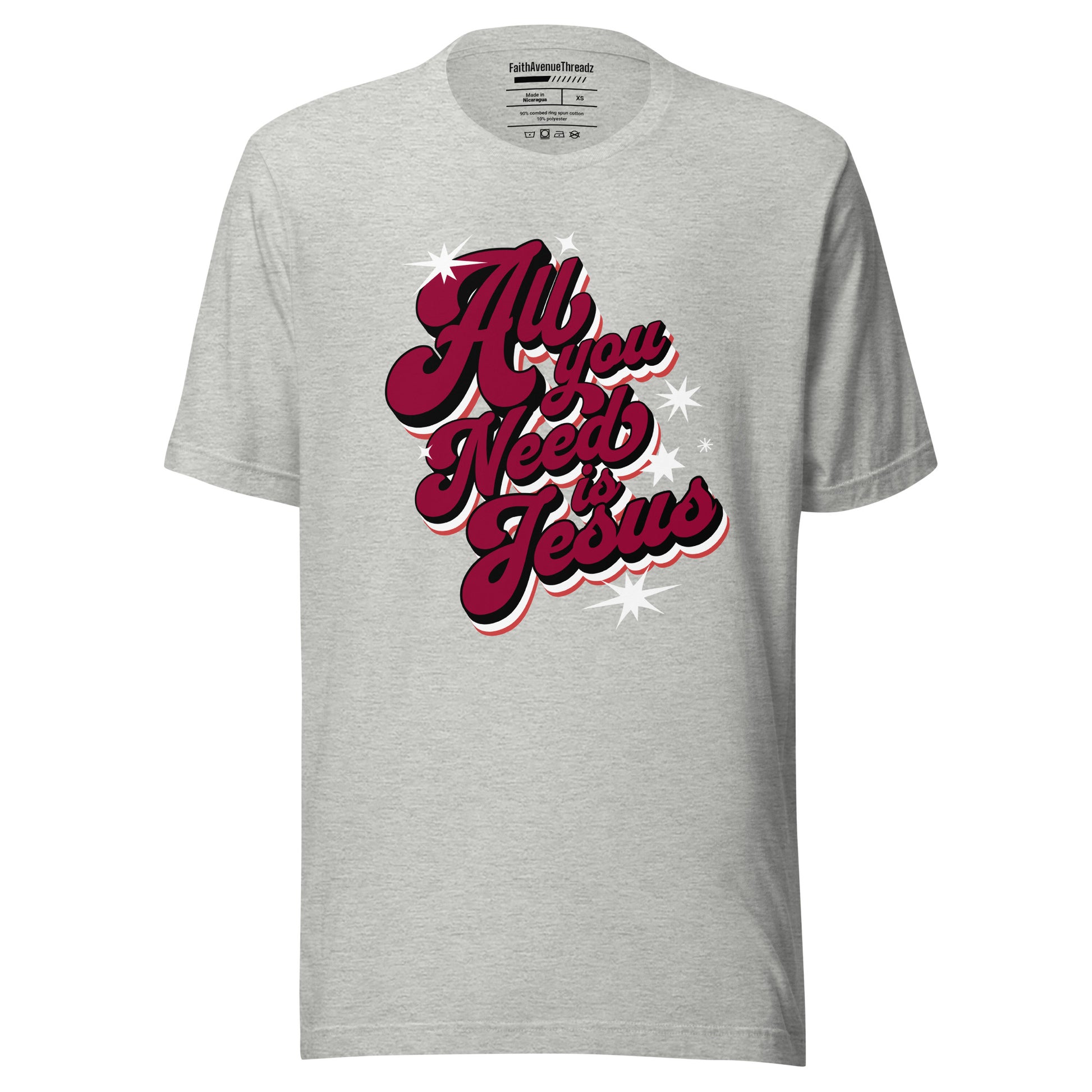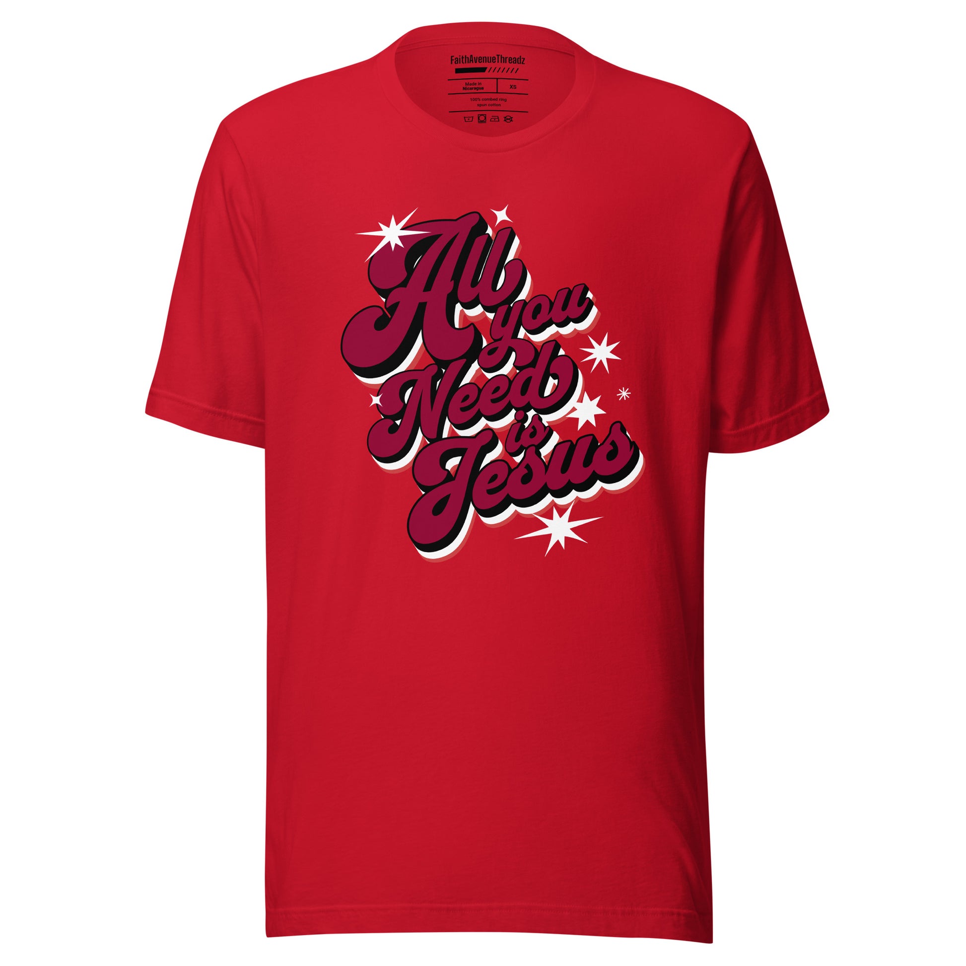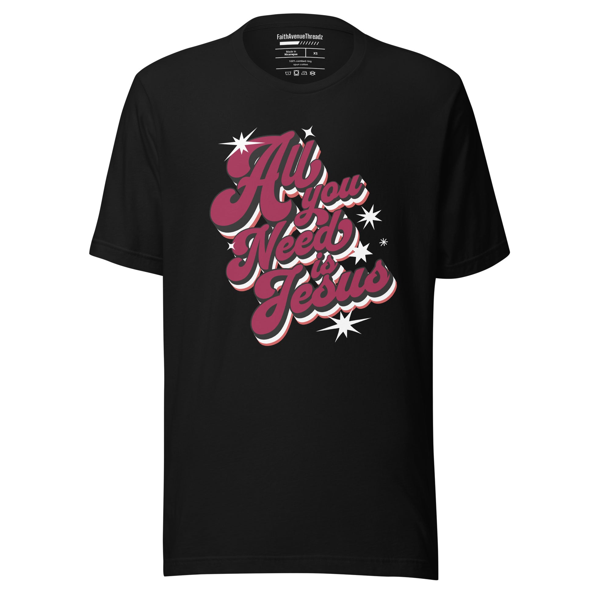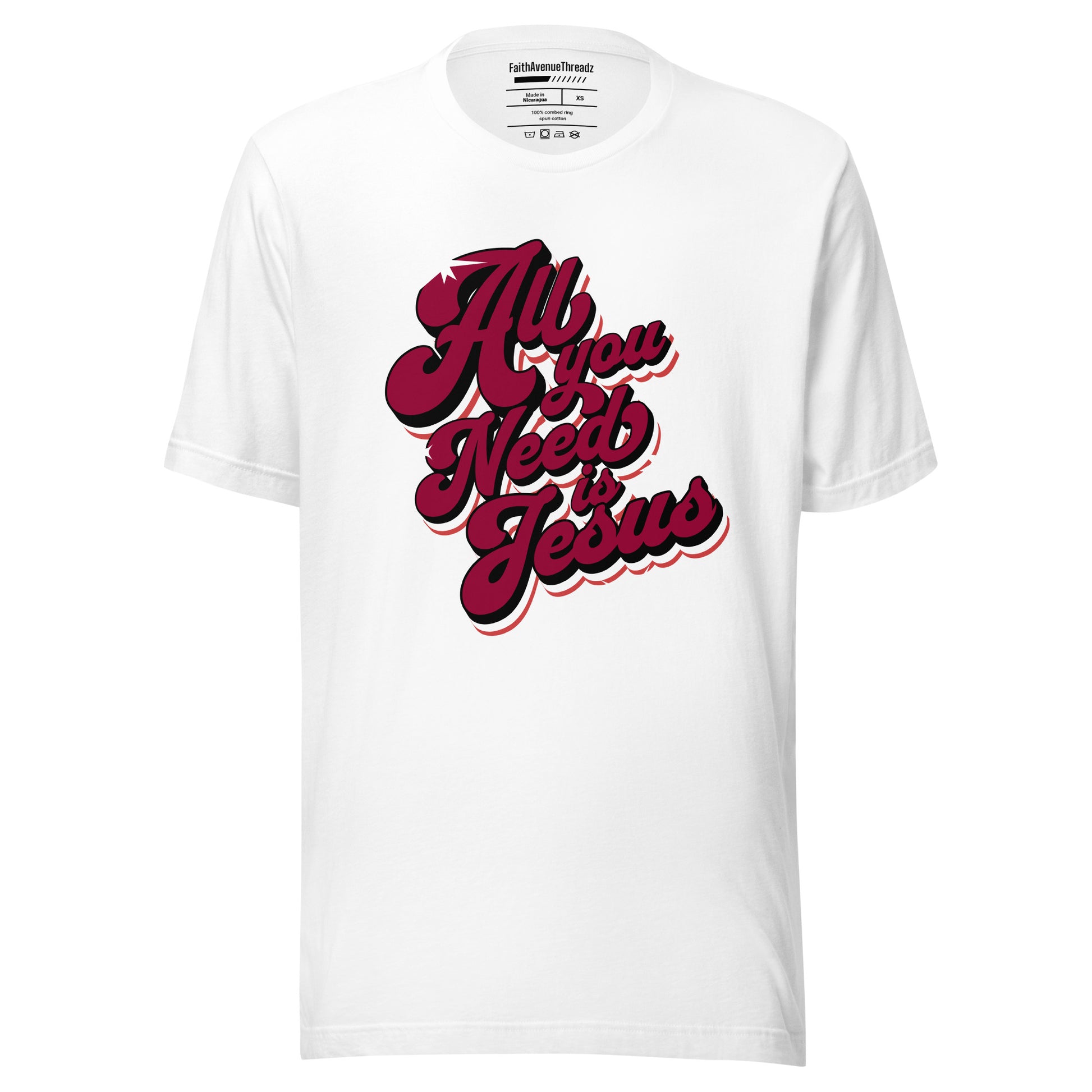 Experience the transformative power of the Lord Jesus with our ''All You Need Is Jesus'' Christian T-shirt. This t-shirt features an inspiring message that serves as a reminder that with Jesus we have all we need. Whether you're at church, with friends, or out and about, let your confidence in Jesus shine through your attire.