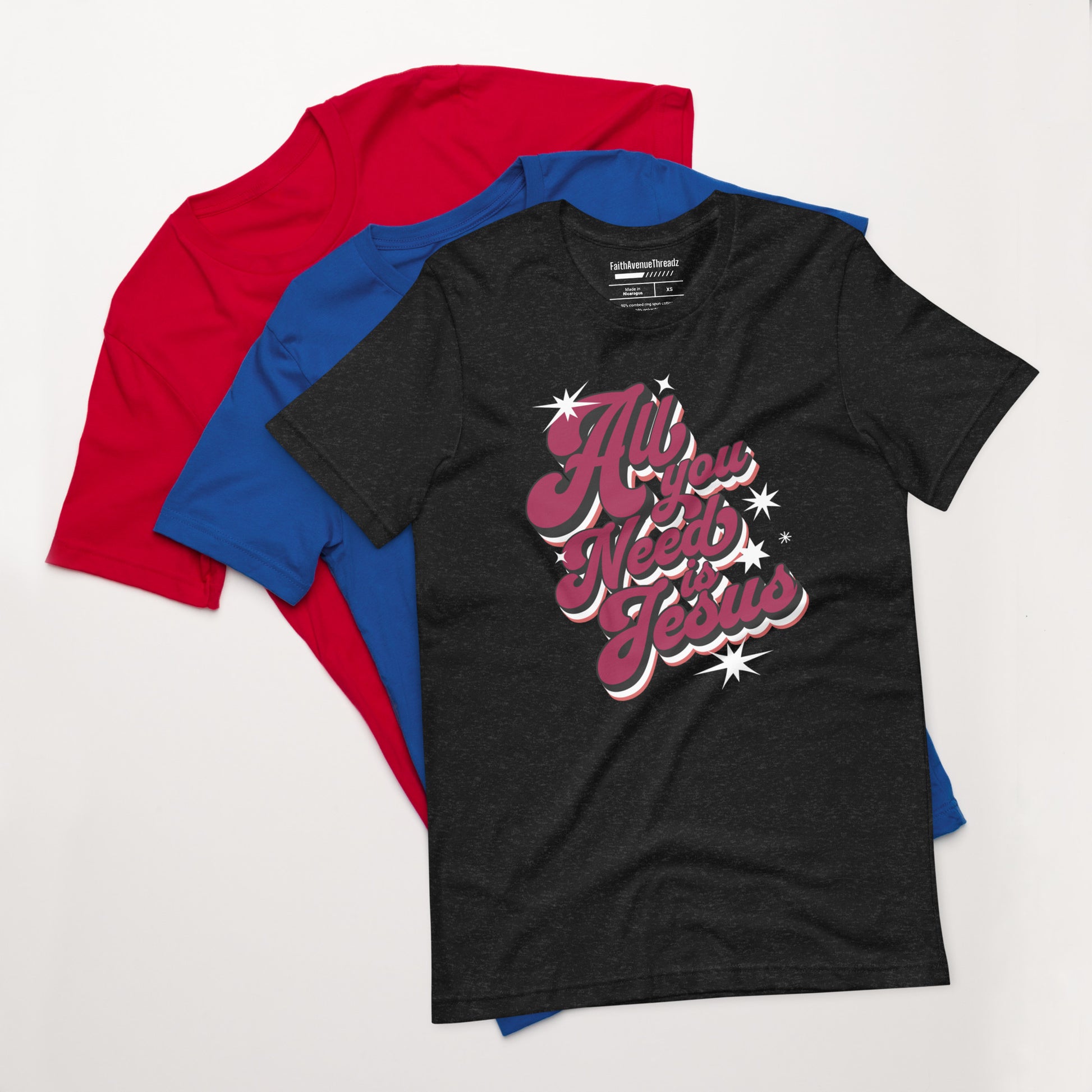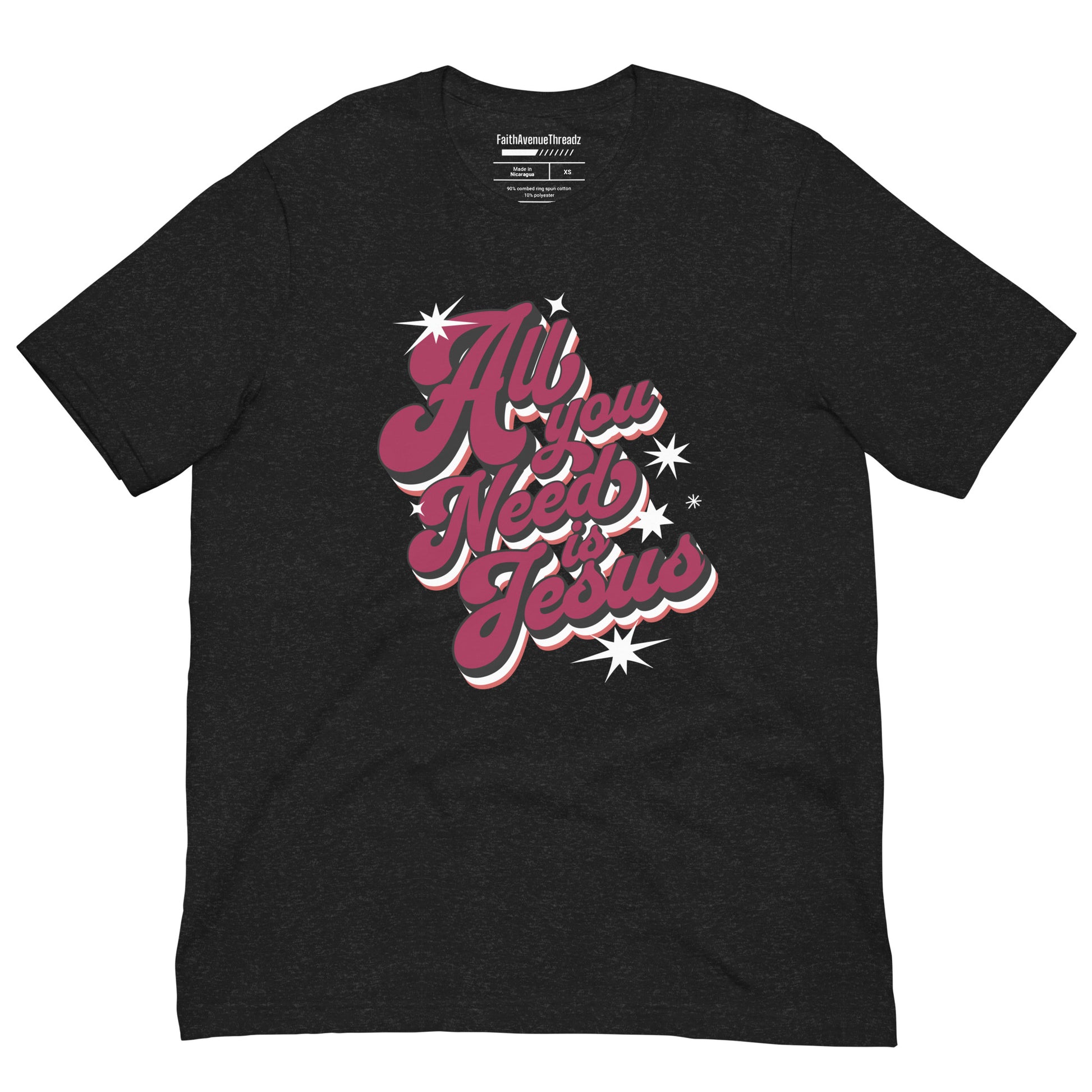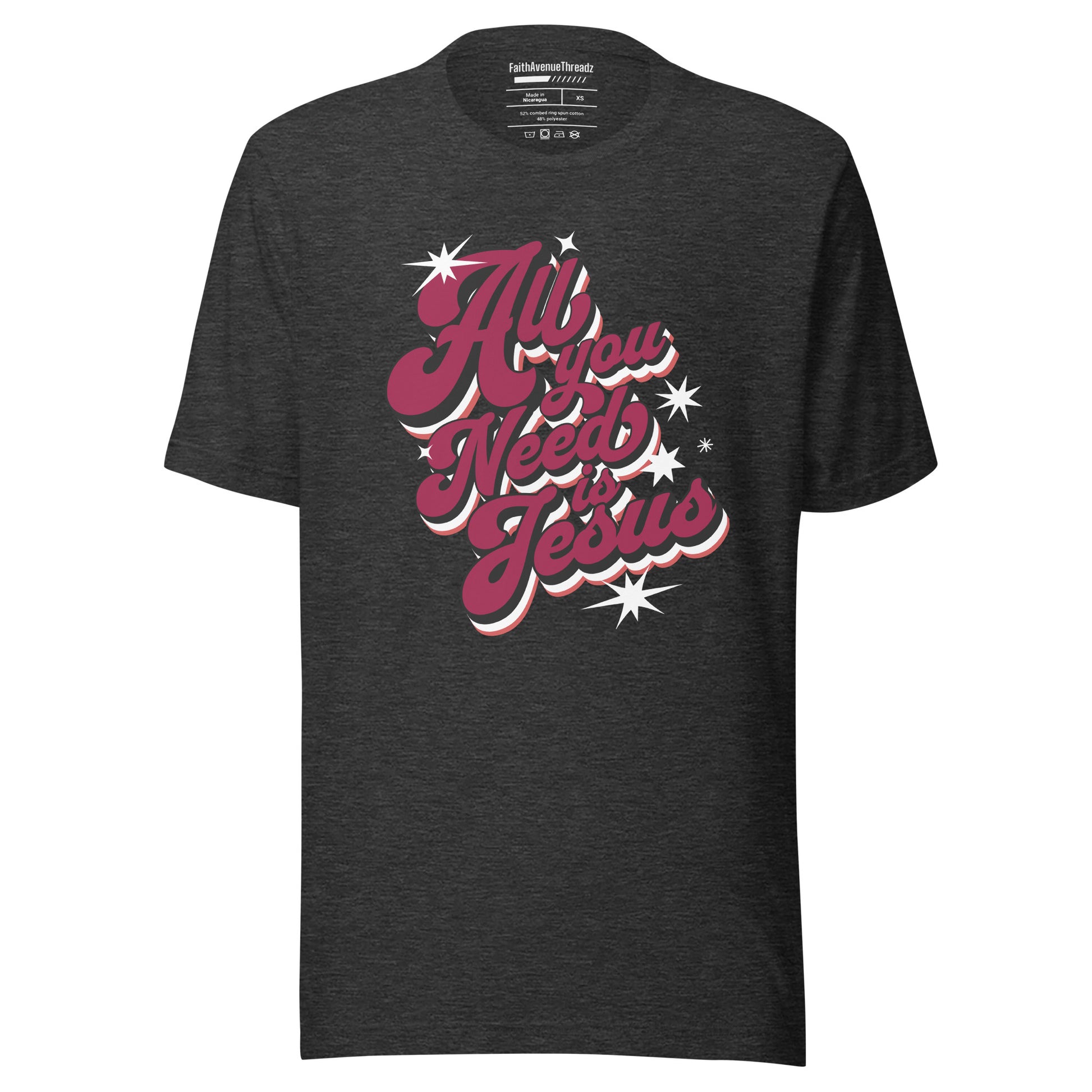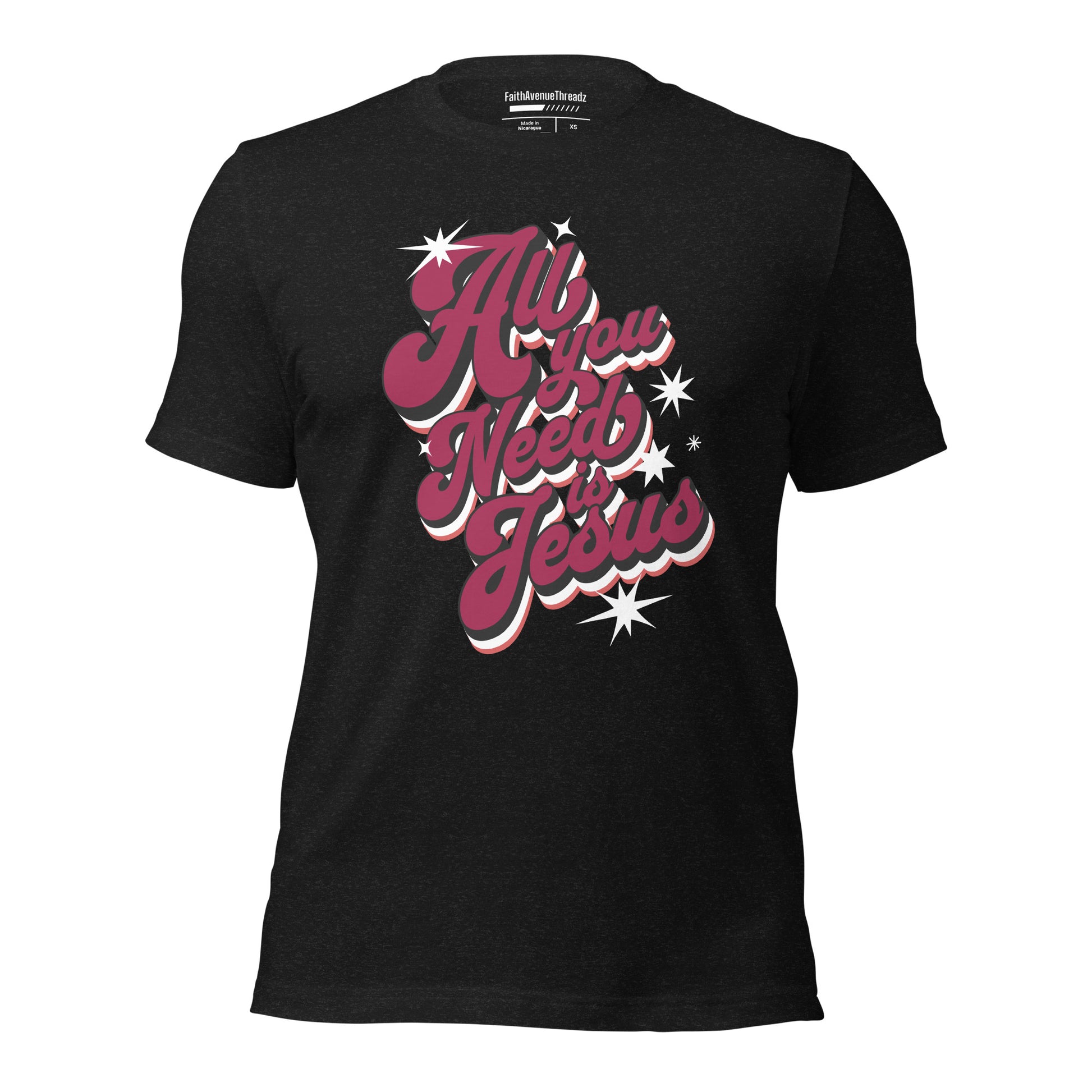 Experience the transformative power of the Lord Jesus with our ''All You Need Is Jesus'' Christian T-shirt. This t-shirt features an inspiring message that serves as a reminder that with Jesus we have all we need. Whether you're at church, with friends, or out and about, let your confidence in Jesus shine through your attire.
