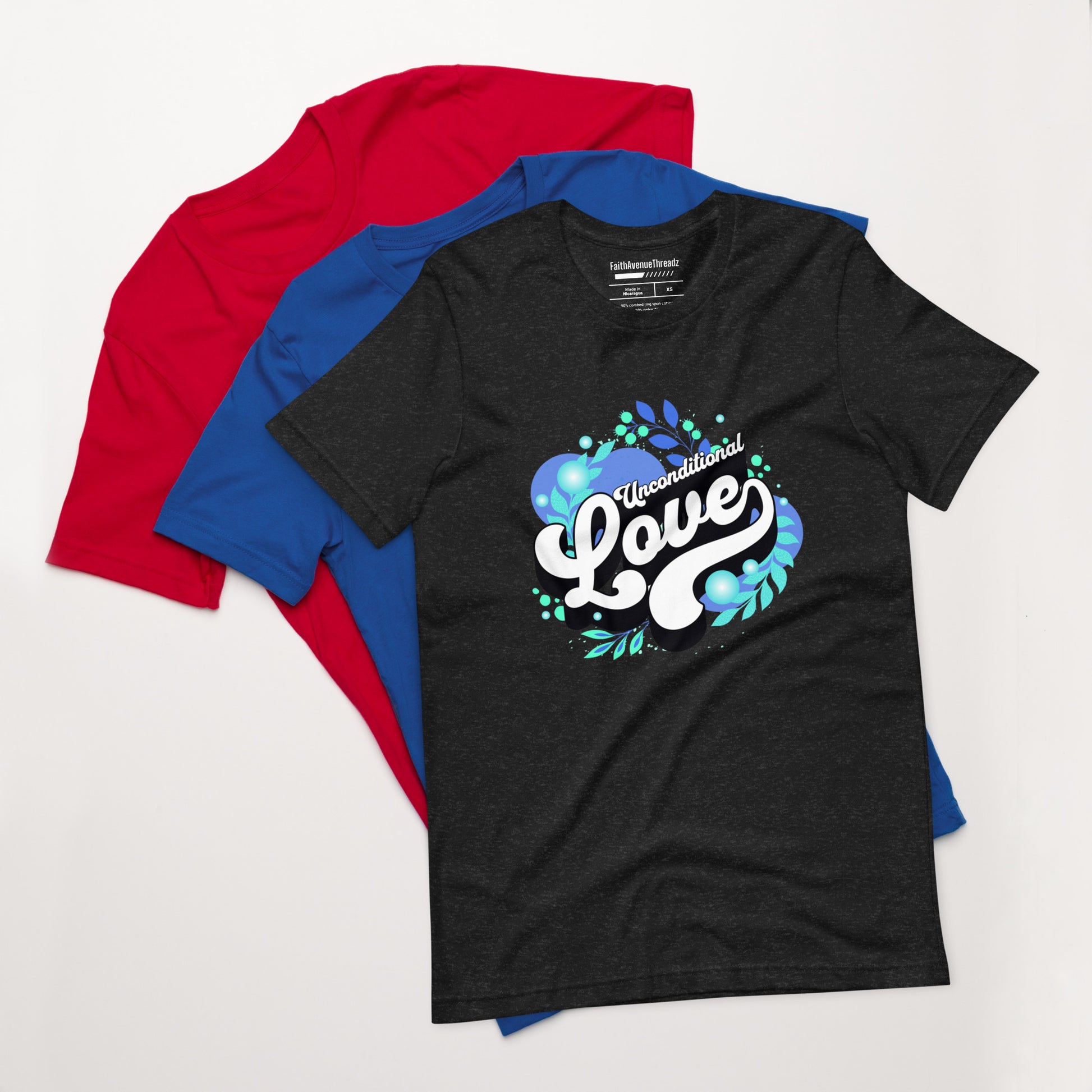 Experience the grace woven into every thread of life with our "Unconditional Love" design. The words "Unconditional Love" convey the idea that God's love is constant, no matter the circumstance. Wear it as a reminder of the ever-present love that surrounds you.